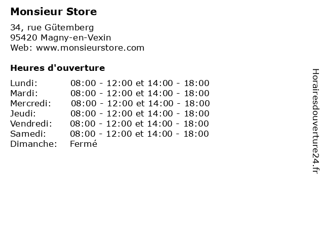 | Lundi | 08:00-12:00 et 14:00-18:00 |