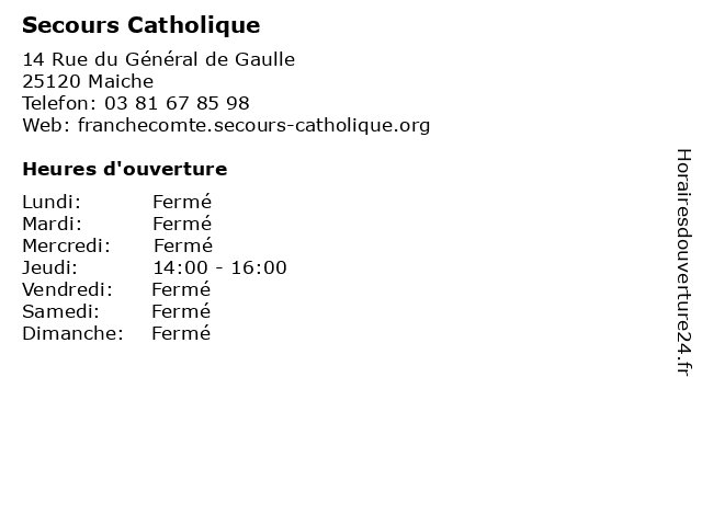 1 Secours Catholique (Distance: 11,40 km) 11 Rue du Père, 25210 Le Russey associatif, association, bénévolat, bénévole, catholique, secours, solidaire, solidarité 2 Centre de secours renforcé de Maiche - SDIS 25 (Distance: 0,86 km) 12 rue de l'Europe, 25120 Maiche 25, centre, de, lutte contre les incendies, maiche, pompier, protection, prévention, renforcé, sdis, secours 3 Centre de secours - SDIS 25 (Distance: 7,52 km) - Rue de la Gare, 25190 Saint-Hippolyte 25, centre, de, hippolyte, lutte contre les incendies, pompier, protection, prévention, saint, sdis, secours 4 Centre de secours renforcé - SDIS 25 (Distance: 15,50 km) 1 Rue des Marronniers, 25150 Pont De Roide 25, centre, de, lutte contre les incendies, pompier, pont, protection, prévention, renforcé, roide, sdis, secours 5 Centre de secours - SDIS 25 (Distance: 17,23 km) - rue Tridard, 25430 Sancey Le Grand 25, centre, de, grand, le, lutte contre les incendies, pompier, protection, prévention, sancey, sdis, secours 6 Centre de secours - SDIS 25 (Distance: 19,93 km) - rue de Pâvre, 25510 Pierrefontaine-les-Varans 25, centre, de, les, lutte contre les incendies, pierrefontaine, pompier, protection, prévention, sdis, secours, varans |