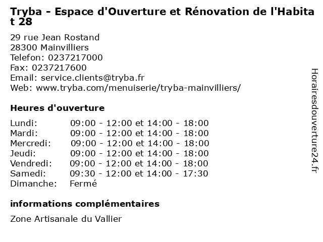 | Mardi | 09:00-12:00 et 14:00-18:00 |