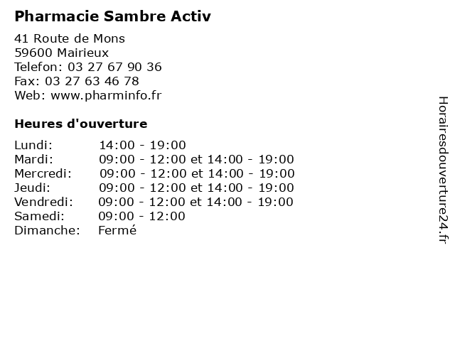 | Mardi | 09:00-12:00 et 14:00-19:00 |