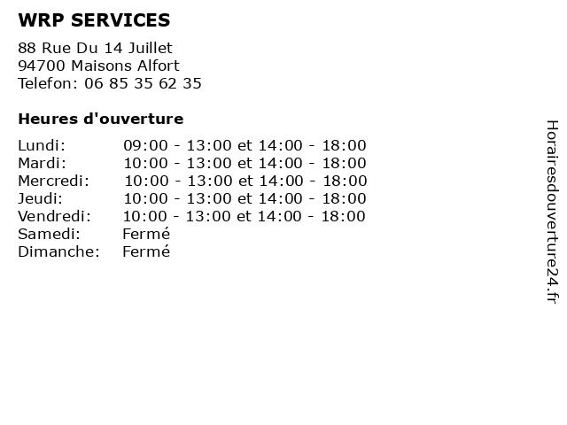 | Mercredi | 10:00-13:00 et 14:00-18:00 |