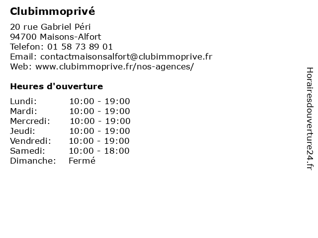 Horaires d'ouverture |