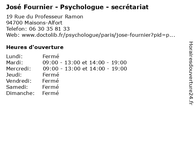 Termes de recherche pour José Fournier - Psychologue - secrétariat:jose, fournier, secretariat, médecins, psychologue, thérapies, cabinets |