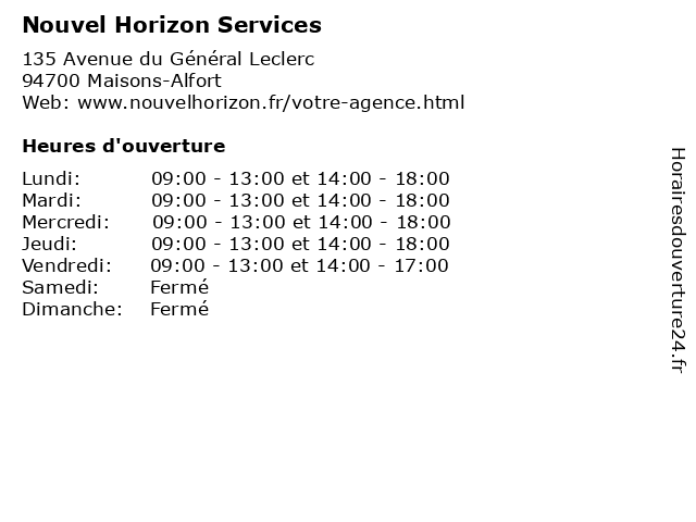 | Lundi | 09:00-13:00 et 14:00-18:00 |
