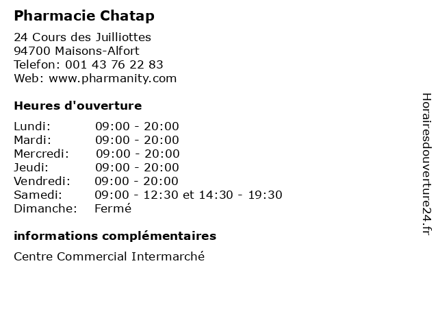 | Samedi | 09:00-12:30 et 14:30-19:30 |