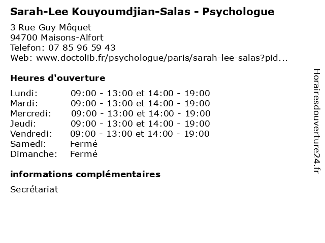 | Lundi | 09:00-13:00 et 14:00-19:00 |