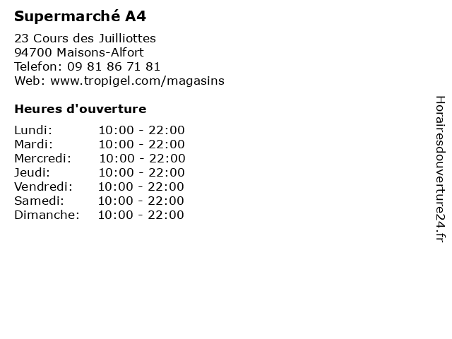 1 SUPERMARCHÉ G20 (Distance: 0,36 km) 78-80 Avenue du Général Leclerc, 94700 Maisons-Alfort g20, supermarché 3 Auchan Supermarché Maisons-Alfort Cadiot (Distance: 0,84 km) 13-17 Avenue Du Professeur Cadiot, 94700 MAISONS-ALFORT alfort, auchan, cadiot, maisons, supermarché 4 Supermarché Diagonal (Distance: 0,87 km) 122 Rue Jean Jaurès, 94700 Maisons-Alfort alimentaire, courses, diagonal, divers, supermarché 5 Supermarché Diagonal (Distance: 0,87 km) 24 Rue Saint-Martin, 75004 Paris alimentaire, courses, diagonal, divers, supermarché 6 Auchan Supermarché Maisons-Alfort 2 (Distance: 1,19 km) 133 Rue Jean Jaurès, 94700 MAISONS-ALFORT alfort, auchan, maisons, supermarché |