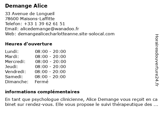 1 Dr Marie-Alice Colmiche - Chirurgien-dentiste (Distance: 0,06 km) 42 Avenue de Longueil, 78600 Maisons-Laffitte alice, chirurgien, colmiche, dentaire, dentiste, dr, implantologie, marie, parodontologie 2 Dr Alice Leroy - Chirurgien-dentiste (Distance: 1,26 km) 13 Avenue de la République, 78500 Sartrouville alice, chirurgien, dentiste, dr, leroy, médecin, médecine, médical, pharmaceutique, traitement 3 Dr Alice Chombar - Chirurgien-dentiste (Distance: 4,39 km) 52 Boulevard Clemenceau, 95240 Cormeilles-en-Parisis alice, centre, chirurgien, chombar, cormeilles, dentaire, dentiste, dr, en, implantologie, ortodontix, parisis, parodontologie 4 Dr Alice Grand - Médecin généraliste (Distance: 5,77 km) 38 Esplanade de L'Europe, 95100 Argenteuil alice, dr, grand, généraliste, médecin, médecine, médical, pharmaceutique, traitement 5 Chez Alice Salon de Thé (Distance: 6,81 km) 10 Rue des Vieilles Boucheries, 78100 Saint-Germain-en-Laye alice, bar, bistro, bistrot, brasserie, café, chez, de, restaurant, restauration, salon, thé 6 Dr Alice Delval - Chirurgien-dentiste - secrétariat (Distance: 8,45 km) 55 Boulevard de la République, 92250 La Garenne-Colombes alice, chirurgien, chirurgien-dentiste, delval, dentiste, dr, médecins, médicaments, santé, secrétariat, spécialiste |