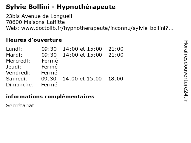 | Samedi | 09:30-14:00 et 15:00-18:00 |