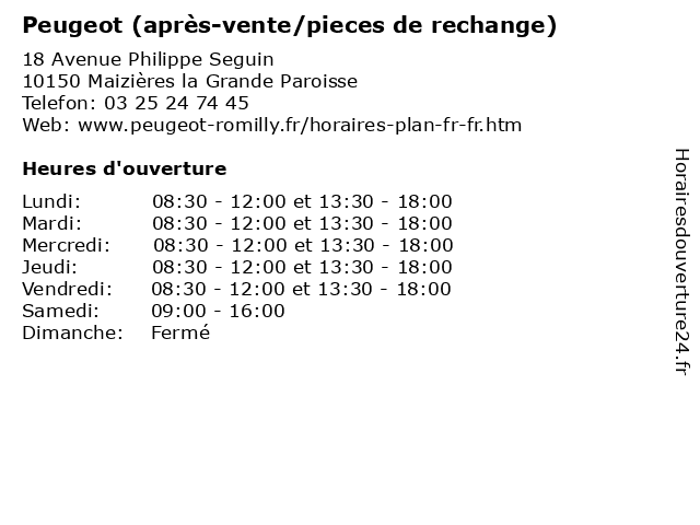 | Lundi | 08:30-12:00 et 13:30-18:00 |