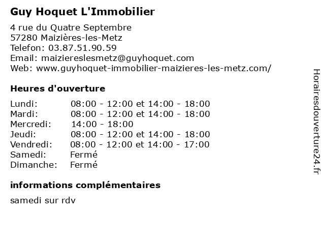 | Lundi | 08:00-12:00 et 14:00-18:00 |