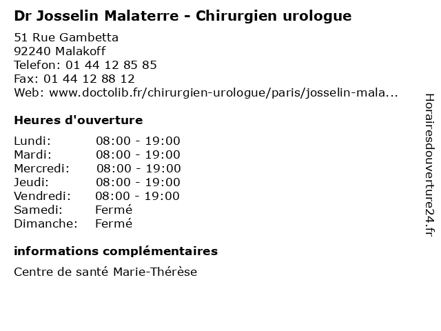 1 Dr Josselin Malaterre - Chirurgien urologue (Distance: 0,88 km) 189 Rue Raymond Losserand, 75014 Paris centres, chirurgien, de, docteur, dr, generaliste, josselin, malaterre, marie, medical, santé, soin, thérèse, urologue 2 Dr Mohamed Fennouri - Chirurgien urologue (Distance: 0,00 km) 51 Rue Gambetta, 92240 Malakoff chirurgien, dr, fennouri, mohamed, médecin, médecine, médical, pharmaceutique, traitement, urologue 3 Dr Xavier Cathelineau - Chirurgien urologue (Distance: 1,71 km) 42 boulevard Jourdan, 75014 Paris cathelineau, chirurgien, consultation, docteur, dr, med, médecin, traitement, urologue, xavier 4 Dr. Eric Barret - Chirurgien urologue (Distance: 1,71 km) 42 boulevard Jourdan, 75014 Paris barret, chirurgien, consultation, docteur, dr, dr., eric, med, médecin, traitement, urologue 5 Dr. François Rozet - Chirurgien urologue (Distance: 1,71 km) 42 boulevard Jourdan, 75014 Paris chirurgien, consultation, docteur, dr, dr., françois, med, médecin, rozet, traitement, urologue 6 Dr Jean-Michel Casanova - Chirurgien urologue (Distance: 2,11 km) 37 Rue des Volontaires, 75015 Paris casanova, chirurgien, dr, jean, michel, médecin, médecine, médical, pharmaceutique, traitement, urologue |
