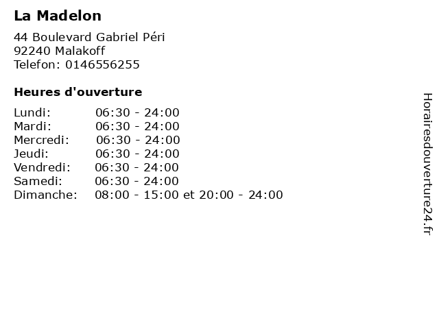 Termes de recherche pour La Madelon:la, boissons, restaurants, madelon, collations |
