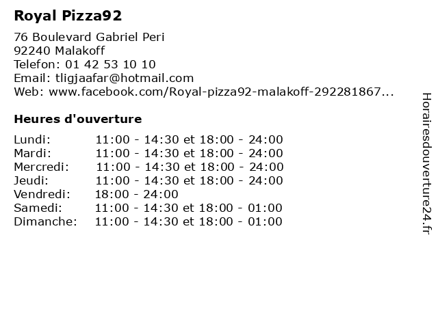 Mercredi | 11:00-14:30 et 18:00-24:00 |