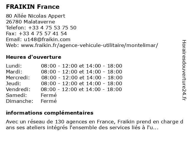 3 Fraikin Avignon le Pontet (Distance: 54,91 km) 36 Avenue de Fontvert, 84130 Le Pontet avignon, fraikin, le, pontet 4 Fraikin (Distance: 58,99 km) s/n Avenue de Saint-Chamand, 84032 Avignon fraikin, location, services, utilitaire, véhicules 6 Heatscope France (Distance: 5,33 km) - Chemin du Plantas, 26290 Donzère accessoires, chauffage, extérieur, fournisseur, france, heatscope, intérieur, produits |