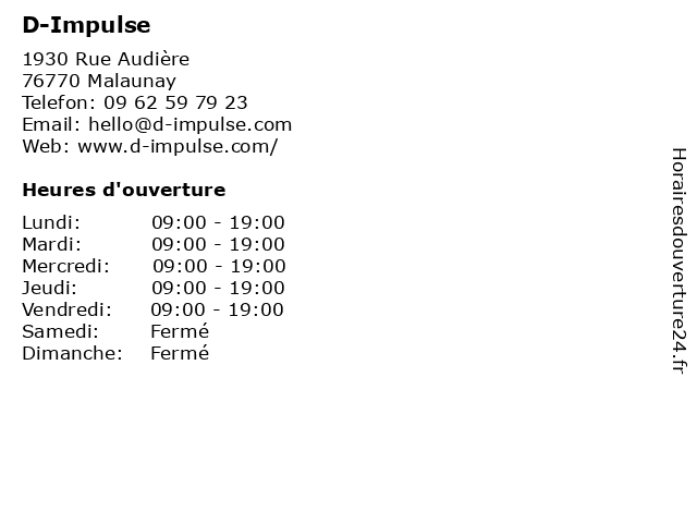 | Lundi | 09:00-19:00 |