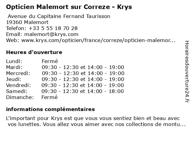 Termes de recherche pour Opticien Malemort sur Correze - Krys:sur, opticien, krys, corrèze, malemort |