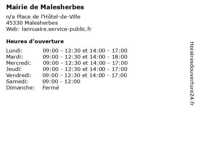 | Mardi | 09:00-12:30 et 14:00-18:00 |