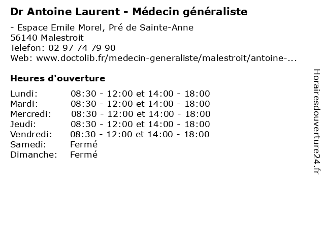 | Lundi | 08:30-12:00 et 14:00-18:00 |