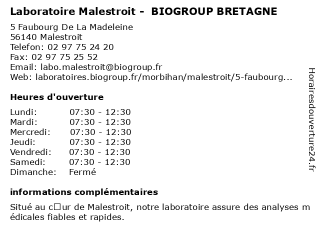Termes de recherche pour Laboratoire Malestroit - BIOGROUP BRETAGNE:bretagne, malestroit, laboratoire, biogroup, dépistages, laboratoire de diagnostic |