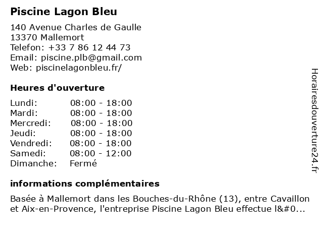 1 Bleu Libellule (Distance: 7,65 km) Avenue de la Capelette, 13560 Sénas bleu, cheveux, coiffure, corps, esthétique, libellule, produits beauté, produits professionnels, visage 2 Piscine Canourgues (Distance: 10,43 km) - avenue du Dauphiné, 13300 Salon-de-Provence aqua, aquatique, canourgues, piscine 3 Piscine Municipale (Distance: 11,27 km) - Avenue Léo Lagrange, 13410 Lambesc aqua, aquatique, de, lambesc, municipale, piscine 4 5 Orange Bleu Fleurs (Distance: 11,93 km) 245 place Jules Morgan, 13300 Salon-de-Provence bleu, décorateur, fleuriste, fleurs, orange 6 Bleu Libellule (Distance: 12,15 km) Allée René Corte, 13300 Salon-de-Provence bleu, cheveux, coiffure, corps, esthétique, libellule, produits beauté, produits professionnels, visage |