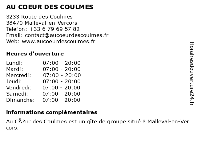 | Samedi | 07:00-20:00 |