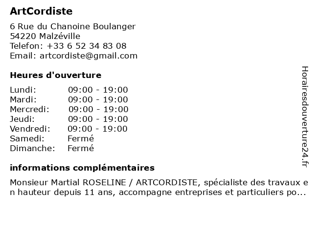 | Dimanche | Fermé |