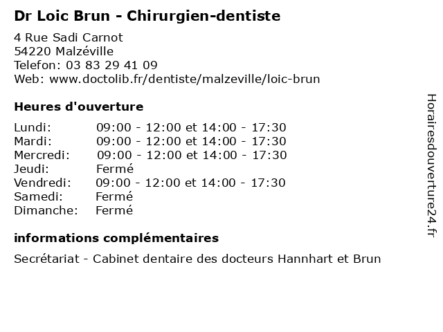1 Dr Isabelle Le Brun - Neurologue (Distance: 2,60 km) 29 Avenue du Maréchal de Lattre de Tassigny, 54000 Nancy brun, consultation, docteur, dr, isabelle, le, med, médecin, neurologue, traitement 2 Dr Loic Refahi - Chirurgien-dentiste (Distance: 5,02 km) 8 Grande Rue, 54420 Saulxures-lès-Nancy chirurgien, dent, dentiste, docteur, dr, loic, refahi, soins 3 Loïc Antzemberger - Masseur-kinésithérapeute (Distance: 1,64 km) 6 Boulevard 21E Régiment Aviation, 54000 Nancy antzemberger, kiné, kinésithérapeute, loic, loïc, masseur, rééducation, soin 4 Maître Loïc Toilier - Avocat (Distance: 6,97 km) 10 Route de l'Aviation, 54600 Villers-lès-Nancy avocat, avocats, cabinet, conseils, contentieux, juridique, justice, litiges, loic, loïc, maître, services, toilier 5 Loic Cremel - Sage-femme (Distance: 42,02 km) 1 Allée du Château, 57530 Ars-Laquenexy consultation, cremel, docteur, dr, femme, loic, med, médecin, sage, traitement 6 Dr Loic Bernez - Médecin généraliste (Distance: 42,07 km) 6 Rue de Lorraine, 88450 Vincey bernez, docteur, dr, generaliste, généraliste, loic, medical, médecin, soin |