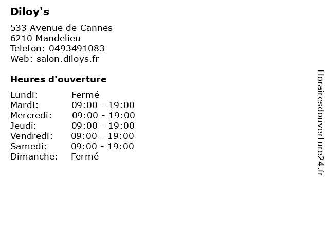 1 Diloy's (Distance: 3,22 km) 84 avenue Francis Tonner, 06150 Cannes-la-Bocca cheveux, coiffure, coloration, coupe, diloy's, mixte 2 Diloy's (Distance: 6,54 km) 20 Boulevard Carnot, 06400 Cannes beauté, cheveux, coiffeur, coiffure, coupe, diloy's, esthétique, salon, visagiste 3 Diloy's (Distance: 13,03 km) 3 bis avenue Thiers, 06130 Grasse cheveux, coiffure, coloration, coupe, diloy's, mixte 4 Jean-Louis David (Distance: 0,57 km) . Avenue de Fréjus, 06210 Mandelieu-la-Napoule barbier, beauté, cheveux, coiffeur, coiffure, david, esthétique, jean, louis, salon, visagiste 5 Alex Frezat Coiffure (Distance: 7,18 km) 8 Rue des Mimosas, 06400 Cannes alex, beauté, cannes, coiffeur, coiffure, coiffures, coloristes, frezat, visagiste 6 Itsi-Ban Coiffure (Distance: 18,89 km) 101 Boulevard Georges Clémenceau, 83700 Saint-Raphaël ban, beauté, cheveux, coiffeur, coiffure, coupe, esthétique, itsi, salon, visagiste |