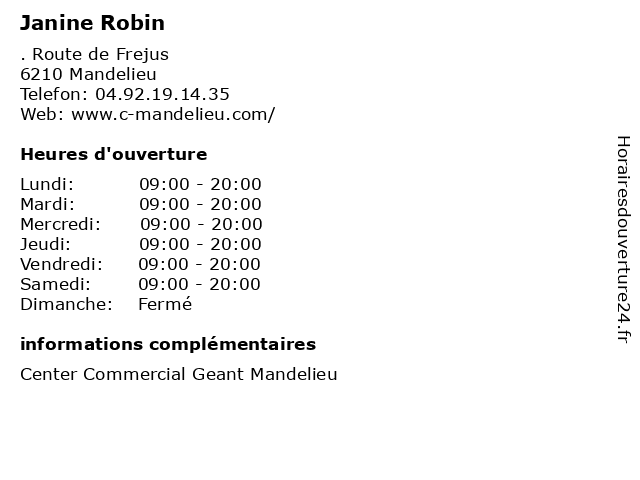 1 Janine Robin (Distance: 15,61 km) 7 Place Charles de Gaulle, 06600 Antibes accessoires, bain, boutique, habillement, janine, lingerie, maillots, mode, robin 2 Janine Robin (Distance: 18,88 km) 149 Rue Charles Gounod, 83700 Saint-Raphaël accessoires, bain, boutique, habillement, janine, lingerie, maillots, mode, robin 4 Dr. Divol Janine - Dermatologue (Distance: 6,83 km) 36 Rue D Antibes, 06400 Cannes dermatologue, divol, docteur, dr., janine, medecins, sante 5 Robin Adida - Ostéopathe (Distance: 7,34 km) 10 Avenue de Vallauris, 06400 Cannes adida, ostéo, ostéopathe, ostéopathes, robin, soins 6 Robin Adida - Ostéopathe (Distance: 7,34 km) 10 Avenue de Vallauris, 06400 Cannes adida, médecin, médecine, médical, ostéopathe, pharmaceutique, robin, secretariat, traitement |