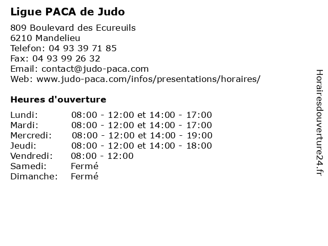 1 Adac Service Paca (Distance: 2,26 km) 20 Boulevard du Midi Louise Moreau, 06400 Cannes adac, paca, service 2 E.G.E. Paca (Distance: 2,72 km) 15 Avenue des Buissons Ardents, 06150 Cannes la Bocca d'installations, e.g.e., paca, électricien, électricité, électriques 4 Judo Ju Jitsu Club Du Plan (Distance: 10,97 km) Avenue Louis Cauvin, 06130 Grasse club, du, jitsu, ju, judo, plan 5 Services Piscines Paca (Distance: 11,79 km) 20 Chemin de la Pouiraque, 06130 Grasse paca, piscines, services 6 Champyland - Paca Motoculture (Distance: 12,13 km) 61 route de Marigarde, 06130 Grasse champyland, entretien, jardinage, matériel, motoculture, paca, réparation |