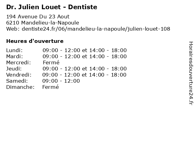 | Lundi | 09:00-12:00 et 14:00-18:00 |