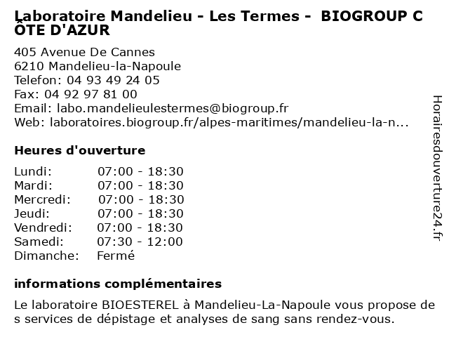 Termes de recherche pour Laboratoire Mandelieu - Les Termes - BIOGROUP CÔTE D'AZUR:les, mandelieu, laboratoire, cote, d'azur, termes, biogroup, dépistages, laboratoire de diagnostic |
