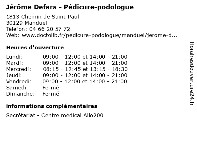 | Mercredi | 08:15-12:45 et 13:15-18:30 |
