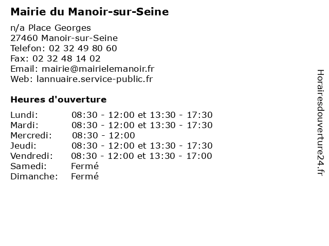 | Lundi | 08:30-12:00 et 13:30-17:30 |