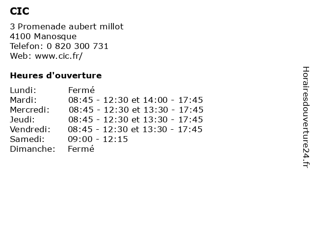 1 CIC (Distance: 1,02 km) 180 D Avenue Regis Ryckebusch, 04100 Manosque cic, compagnie de téléphone, organisme d'assurance 2 Crédit Industriel et Commercial (CIC) (Distance: 36,84 km) - Rond-Point de la Gare, 13770 Venelles agence, argent, assurance, bancaire, banque, cic, commercial, conseil, credit, crédit, et, finance, industriel, patrimoine 3 Crédit Industriel et Commercial (CIC) (Distance: 43,22 km) 4 Rue Fabrot, 13100 Aix-En-Provence agence, argent, assurance, bancaire, banque, cic, commercial, conseil, credit, crédit, et, finance, industriel, patrimoine 4 Crédit Industriel et Commercial (CIC) (Distance: 43,25 km) 11 Cours Gambetta, 13100 Aix-En-Provence agence, argent, assurance, bancaire, banque, cic, commercial, conseil, credit, crédit, et, finance, industriel, patrimoine 5 Crédit Industriel et Commercial (CIC) (Distance: 43,57 km) 4 Place Jeanne d'Arc, 13100 Aix-En-Provence agence, argent, assurance, bancaire, banque, cic, commercial, conseil, credit, crédit, et, finance, industriel, patrimoine 6 Crédit Industriel et Commercial (CIC) (Distance: 46,09 km) 27 Boulevard Gassendi, 04000 Digne-les-Bains agence, assurances, bancaire, banque, cic, commercial, conseil, credit, crédit, et, finance, industriel |