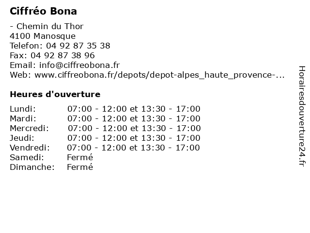 | Lundi | 07:00-12:00 et 13:30-17:00 |