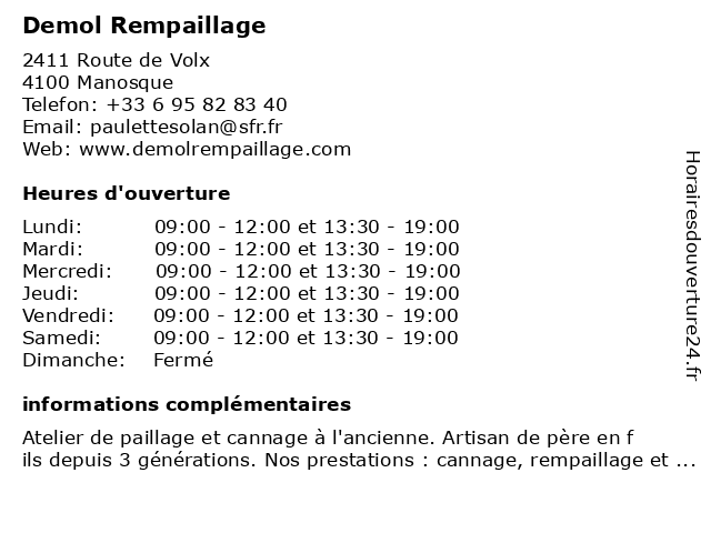 Images pour l'entreprise Demol Rempaillage à Manosque