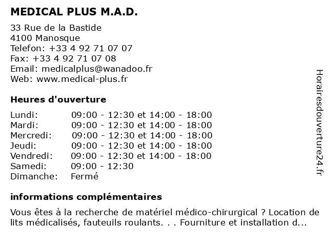 | Lundi | 09:00-12:30 et 14:00-18:00 |