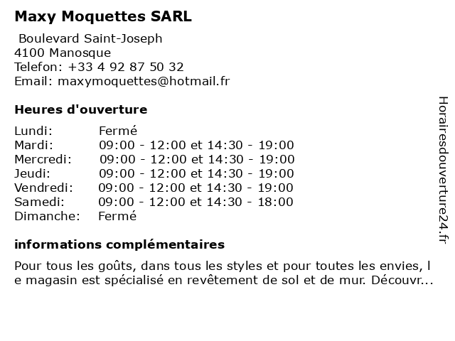 | Mardi | 09:00-12:00 et 14:30-19:00 |