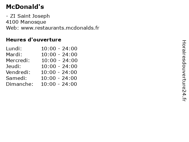 1 McDonald's - McDrive (Distance: 0,00 km) - ZI Saint Joseph, 04100 Manosque burger, fast food, frites, manger, mcdonald's, mcdrive, nourriture, restauration rapide, salade |
