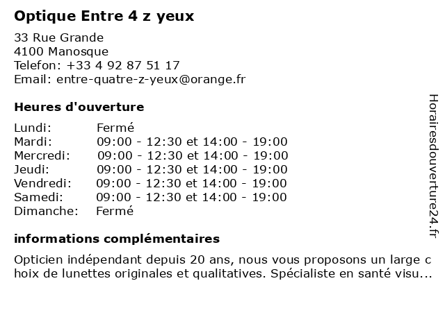 | Samedi | 09:00-12:30 et 14:00-19:00 |