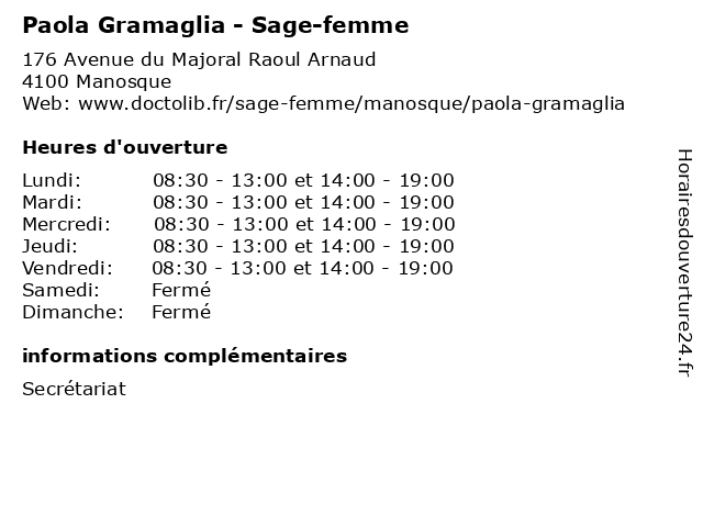 Lundi | 08:30-13:00 et 14:00-19:00 |
