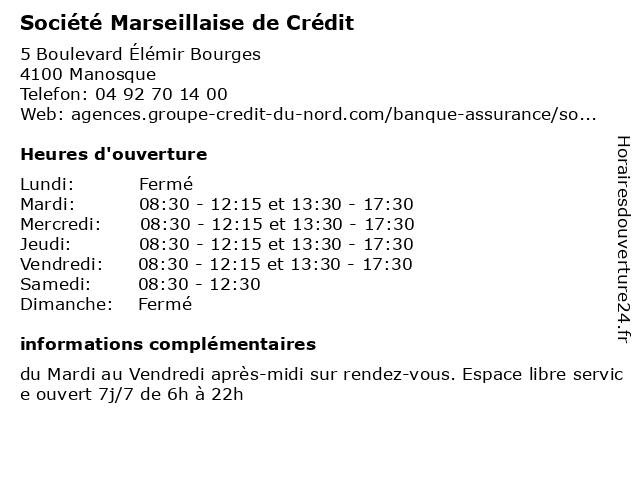 | Mardi | 08:30-12:15 et 13:30-17:30 |