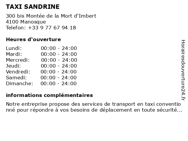| Samedi | 00:00-24:00 |