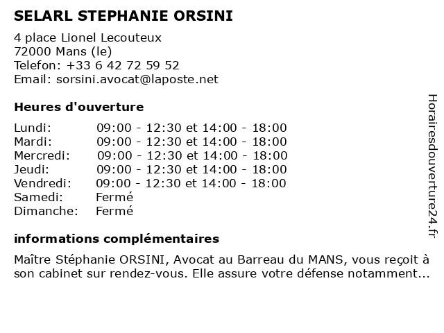 | Lundi | 09:00-12:30 et 14:00-18:00 |