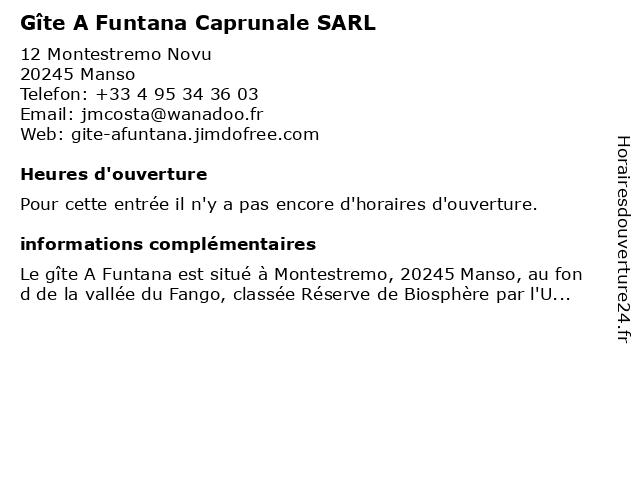 | Appeler Gîte A Funtana Caprunale SARL | |