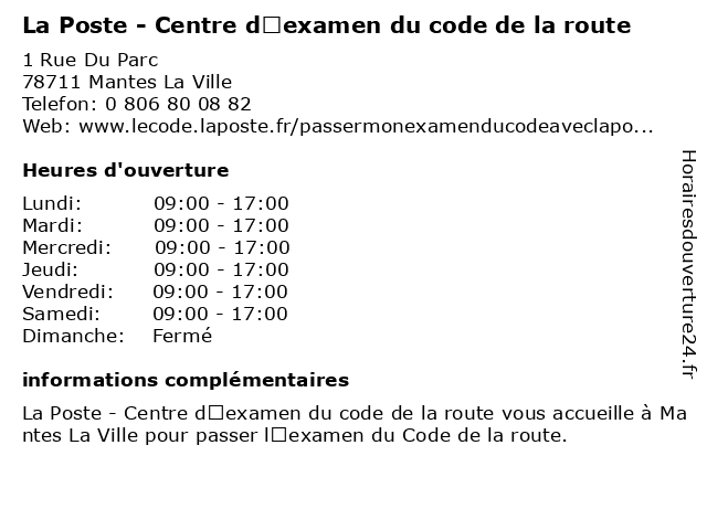 Termes de recherche pour La Poste - Centre d’examen du code de la route:poste, la, du, de, route, centre, code, d’examen, centre d'évaluation scolaire, école technique |