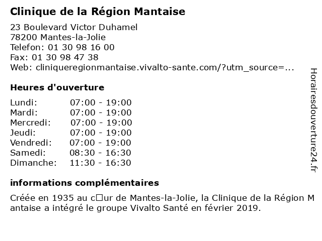 Termes de recherche pour Clinique de la Région Mantaise:la, de, clinique, région, hôpitaux, mantaise, clinique médicale |