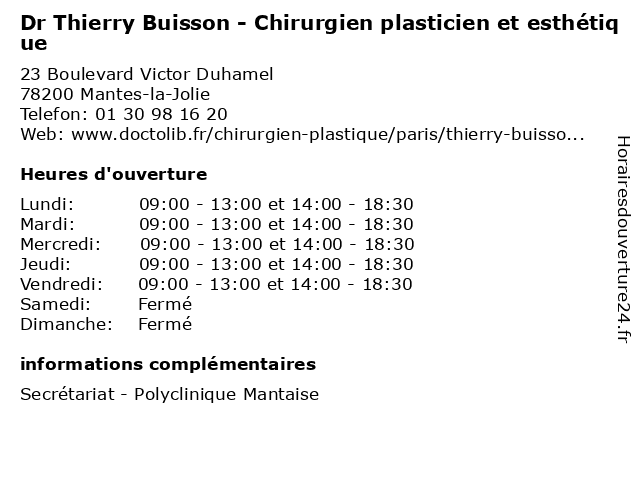 | Lundi | 09:00-13:00 et 14:00-18:30 |